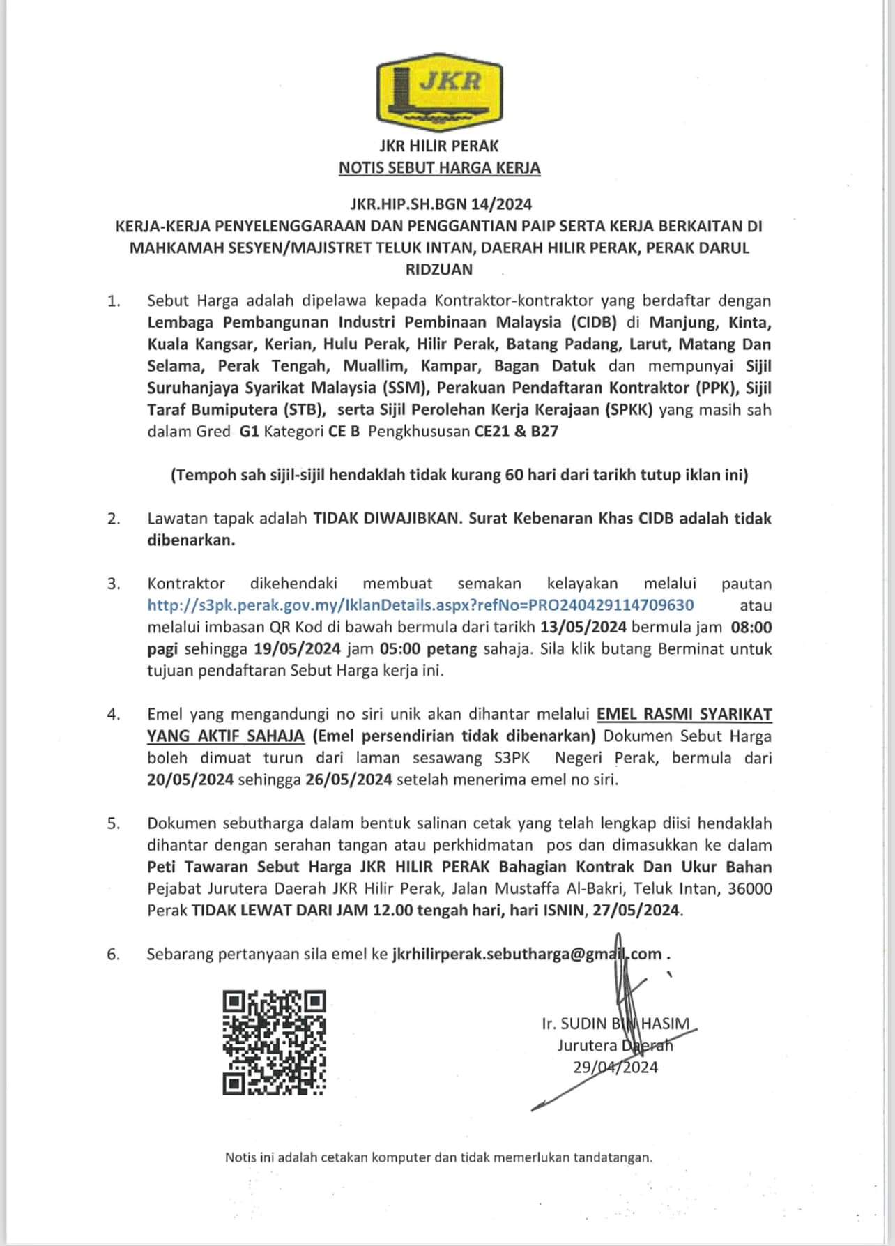 KERJA- KERJA PENYELENGGARAAN DAN PENGGANTIAN PAIP SERTA KERJA BERKAITAN DI MAHKAMAH SEKSYEN/MAJISTRET TELUK INTAN, DAERAH HILIR PERAK, PERAK DARUL RIDZUAN