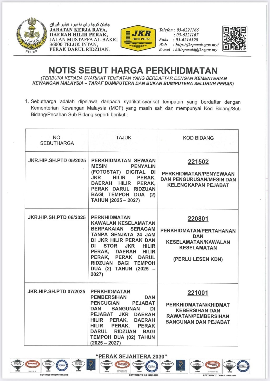 1. (JKR.HIP.SH.PTD 05/2025) - TERBUKA KEPADA BUMIPUTERA DAN BUKAN BUMIPUTERA TEMPATAN DALAM NEGERI PERAK