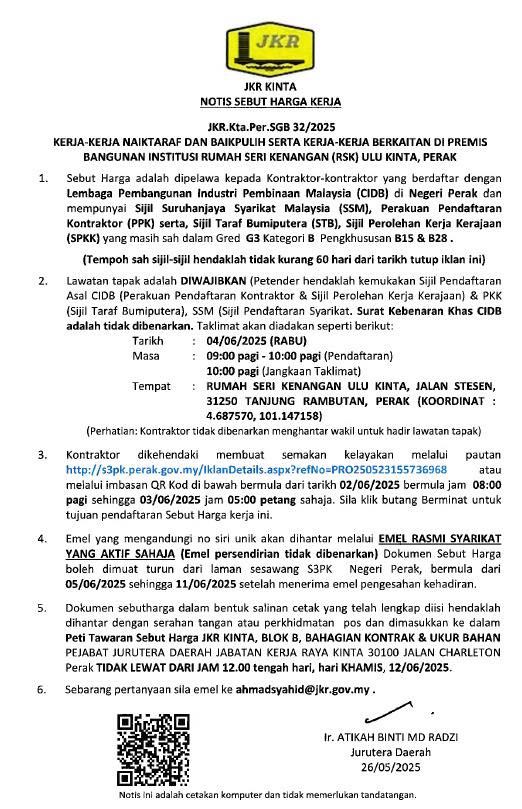 28.05.2025 : NOTIS SEBUTHARGA JKR.Kta.Neg.SGB 32/2025 (G3 B15 & B28) RALAT