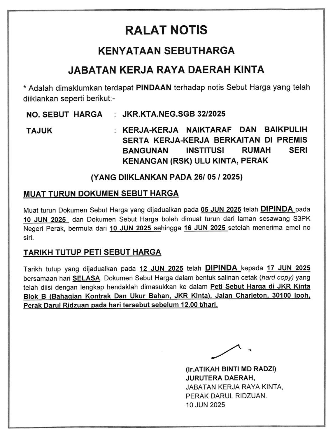 11.06.2025 : RALAT NOTIS SEBUT HARGA JKR.Kta.Per.SGB 32/202