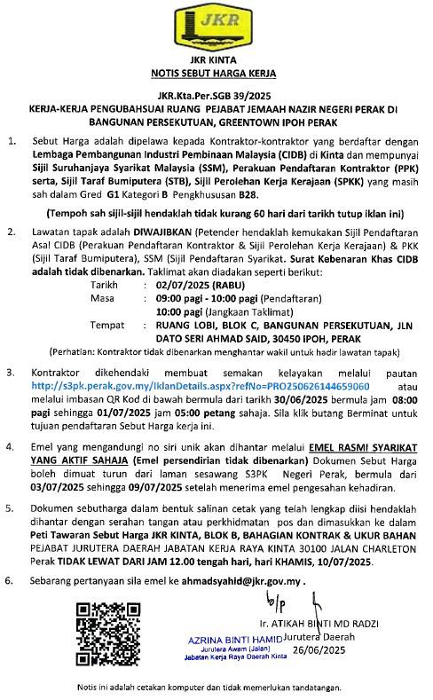 26.06.2025 : NOTIS SEBUTHARGA JKR.Kta.Per.SGB 39/2025 (G1 & B 28)