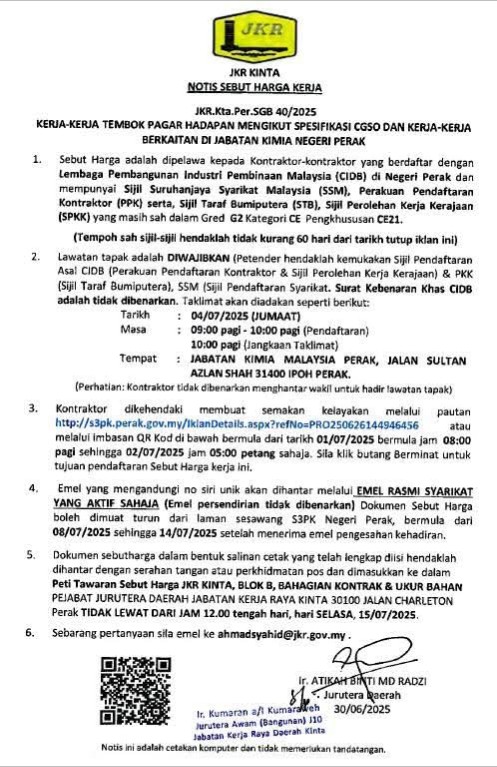 30.06.2025 : Notis sebutharga JKR.Kta.Per.SGB 40/2025 (G2 & CE 21)