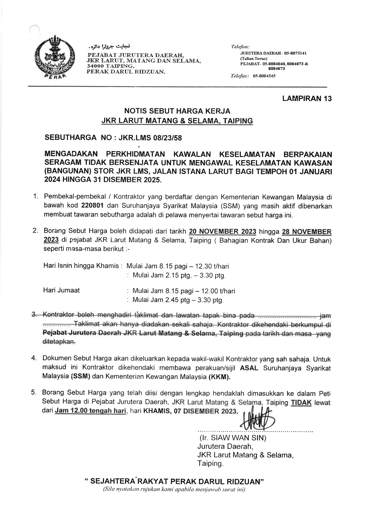 NOTIS SEBUTHARGA KAWALAN KESELAMATAN BAGI TEMPOH 01 JANUARI 2024 HINGGA 31 DISEMBER 2025